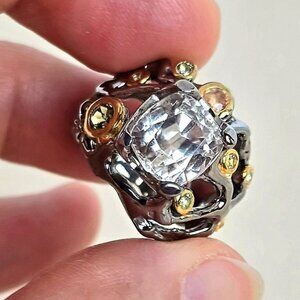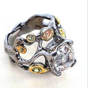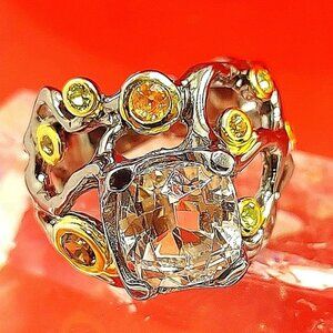 Handcrafted Unheated Kunzite 5.91ct & Sapphire 925 Sterling Silver Ring Sz 6.75