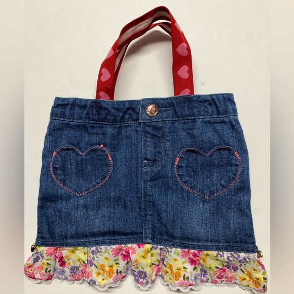 Handcrafted Upcycled Girl’s Purse/Bag, Hearts, Denim