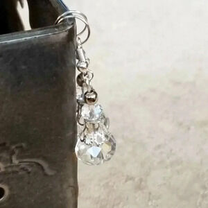 Handcrafted Victorian Clear Crystal Silver Filigree Basket Earrings