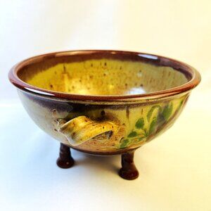 Amazing art pottery bowl stunning drip glaze with subtle variations in tone, giving it a unique and handcrafted appearance. The interior of the bowl has hand painted flowers on the outside and on the inside bottom bowl, adding to its artisanal charm. Highly glazed on the bottom with no markings to the artist.