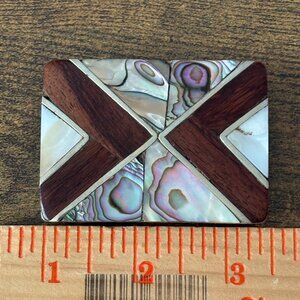 Handcrafted Vintage Mexican Abalone & Wood Belt Buckle triangle Arrow
