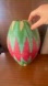 Enhance your home with this vibrant handcrafted vintage vase. Featuring a striking combination of red, green, and cream, this piece adds a touch of artistry to any room.