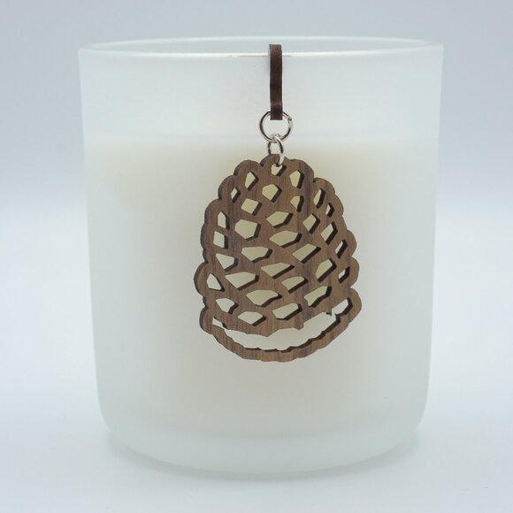 Bring a touch of rustic charm to your candles with this handcrafted pine cone charm—it's like jewelry for your candles! Made from finished walnut, this 3" - 4" long charm captures the natural beauty of a pine cone with its intricate design and warm, earthy tones. Perfect for adding a cozy, nature-inspired accent to your home decor, especially during the fall and winter seasons. Whether you use it as a unique candle accessory or a standalone ornament, this pine cone charm is sure to enhance your space with a touch of woodland elegance.