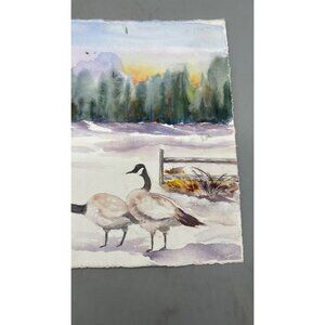 Handcrafted Watercolor Painting Of Winter Scenery With Geese landscape READ
