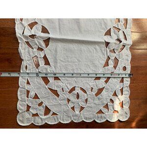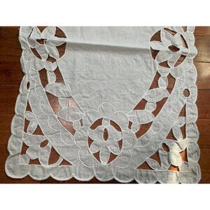 Handcrafted White Lace Table Runner Floral Cutout Pattern Home Decor 38x14