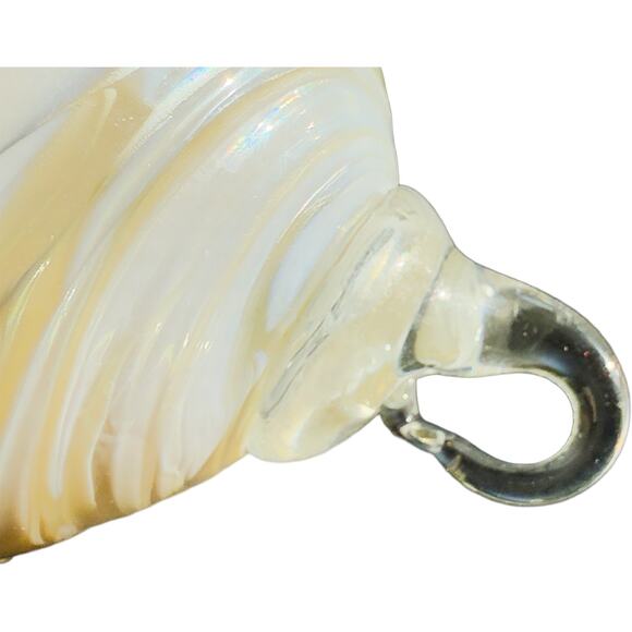 Handcrafted White Pearlescent 4" Blown Glass Tree Ornament Suncatcher Unique