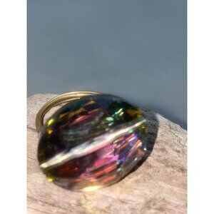 This exquisite handcrafted ring showcases a vibrant multi-color gemstone, meticulously wire-wrapped for a unique and eye-catching design. The gemstone's myriad of colors reflects light beautifully, creating a dazzling array of hues. Ideal for those who appreciate artisanal jewelry, this piece is not only a fashion statement but also a testament to fine craftsmanship.