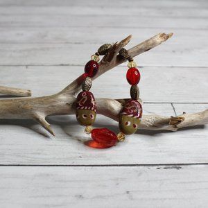 This handcrafted bracelet is made of decorative glass beads, antique gold tone metal beads and assorted other beads. It is beautiful quality and is brand new without tags.