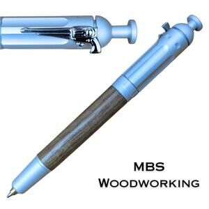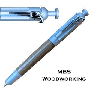 This handcrafted gun enthusiast themed click pen with its silver toned revolver shaped clip and gun barrel end is made from premium exotic Cocobolo hardwood. The wood is skillfully turned and finished to bring out the unique grain and natural beauty. Every pen is one of a kind—no two are exactly alike!
