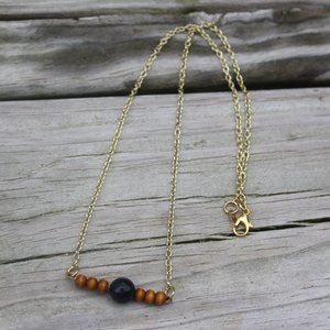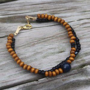 Handcrafted right here in the Missouri Ozarks and ready to become a special gift for someone or add to your own collection. Created on wire to assure durability and high quality adorn by wooden beads with black accents and goldtone lobster clasp closures. The necklace measures app 20 inches, the bracelet is app 8 inches, just a bit larger than standard size, and earring total length is app 1.5 inches. PSL Boutique- PAIN, STRENGTH, and LOVE Boutique appreciates your small business support.