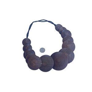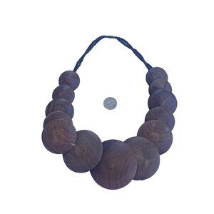 Handcrafted wooden necklace with a unique layered circular bead design. Natural wood tones bring a rustic yet elegant touch. Vintage 1970s.