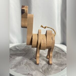 Charming handcrafted wooden giraffe figurine in brown. Perfect for home decor or as a gift.