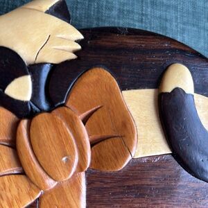 Handcrafted Wooden Cat Puzzle box with Bow secret stash box unique EUC!