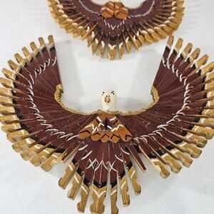 Handcrafted Wooden Clothespin Eagle Wall Art Set - 2 Pieces Folk Art Bird