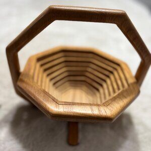 In a quaint village tucked away in the heart of the forest, a skilled craftsman breathed life into this elegant wooden basket. Its intricate design, reminiscent of a blossoming flower, unfolds with grace. The basket, with its collapsible charm, becomes both a piece of art and a functional treasure.
