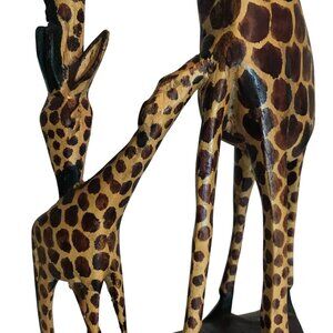Handcrafted Wooden Giraffe & Baby Sculpture 12"