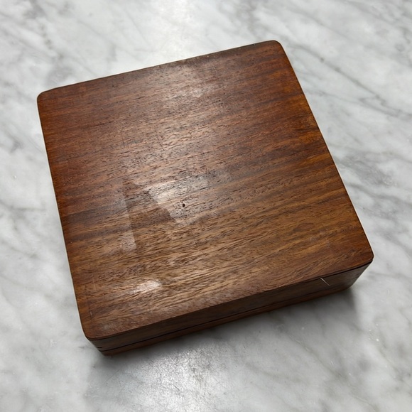 Interior has 6 spots for small items, rings or collectables and one larger compartment