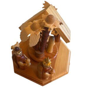 Handcrafted Wooden Nativity Scene Music Box Palm Trees & Figures Silent Night