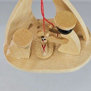 Handcrafted Wooden Nativity Scene Ornament With Red Hanging Loop