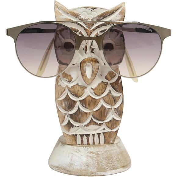 Handcrafted Wooden Owl Eyeglass Holder Stand – Sunglasses Display Gift 5.7” New