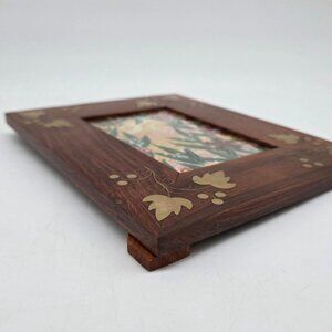 Handcrafted Wooden Photo Frame With Brass Inlay Vine Leaf Design 3.5x5.5 Inch