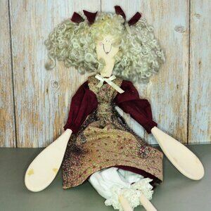 Handcrafted Wooden Spoon Doll Articulated Primitive Dress Kitchen Decor