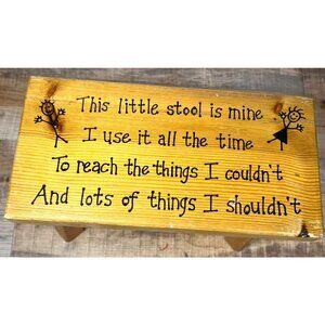 Handcrafted Wooden Step Stool With Humorous Inspirational Poem Decor