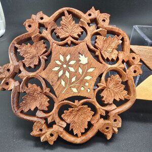 Handcrafted Wooden Trivets With Intricate Leaf & Star Designs - Set Of 2 JJ3841
