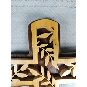 Handcrafted Wooden Wall Cross Intricate Leaf Design 11" Handmade by John Shaw