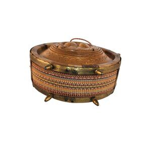 Handcrafted Wooden Water Canteen Decanter Flask Brass Feet Folk Art Barware Deco