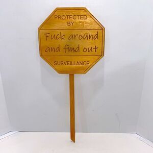 Handcrafted Wooden F••k Around and Find Out Surveillance Yard Sign