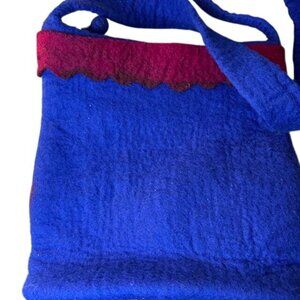 Handcrafted Wool Felt Shoulder Bag With Floral Design & Spiral Accents
