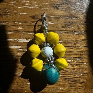 Handcrafted Yellow and Blue Beaded Pendant and paper beads 1600 Y