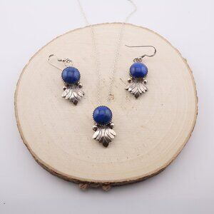 Handcrafted Zuni Lapis Lazuli Necklace and Earrings Set Sterling Silver Jewelry