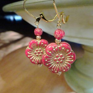 Handcrafted artisanal earrings with whimsical Czech windflowers in 12 colors