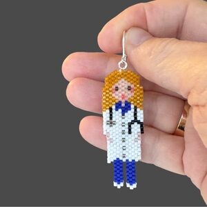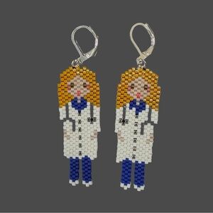 Handcrafted beaded drop earrings physician in white coat and scrubs stethoscope