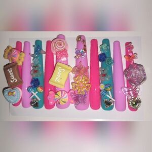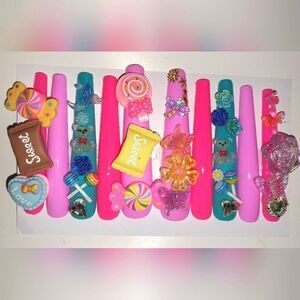 Hand crafted custom florescent 10pc xxl acrylic press on nails sz large