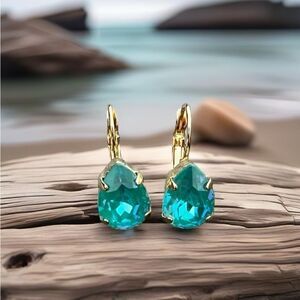 Handcrafted earrings with laguna blue teardrop Swarovski crystal