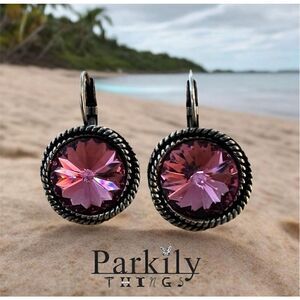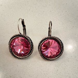 Brand-new, never worn Swarovski crystal silver earrings in a beautiful sparkly rose pink rivoli. I make jewelry using genuine Swarovski crystals. All items are new and prettier in person than pictures. Proceeds used to help our 5-yr-old granddaughter Lila May in her fight against cancer, but she lost her battle. Now she is dancing with angels. A portion of profit will go to Neuroblastoma charities. 205