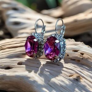 Handcrafted earrings with sparkly fuchsia Swarovski crystal