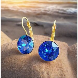Discover our elegant gold leverback earrings featuring stunning midnight blue crystals. While these crystals are not genuine Swarovski, they are carefully selected for their beauty and affordability. Each pair is brand new and even more captivating in person. Proceeds from your purchase now support neuroblastoma charities in honor of our beloved granddaughter Lila May, who bravely fought cancer. Item #345