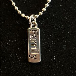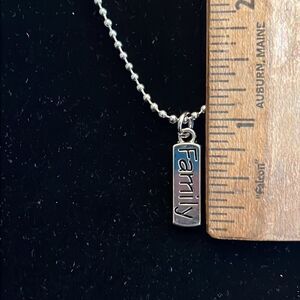 Handcrafted family tag pendant on 19inch silver tone ball chain