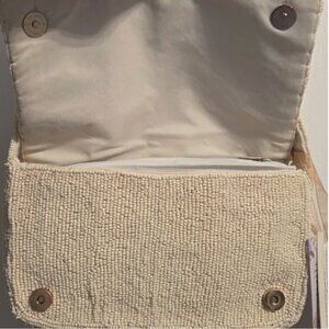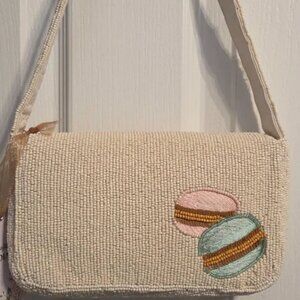Handcrafted in India Coffee Pastry Macarons Beaded Shoulder Bag Cream NWT