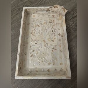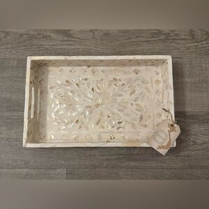 Handcrafted in Vietnam Mother of Pearl White Pattern Bone ~ Local Artisans Tray