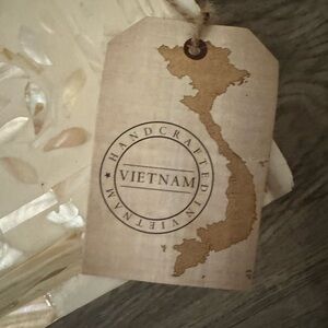 This Artisan Handcrafted Mother of Pearl and White Pattern Bone decor tray made in Vietnam is a perfect addition to your home decor asstetics, inspired by places like Ha Long Bay. Its ornate design and raised edges make it ideal for organizing or displaying items, adding a touch of elegance to your space. The tray's vintage aesthetic complements a variety of home decors throughout your home or office.