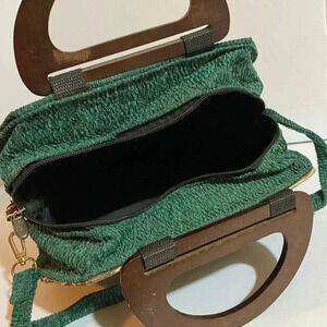 Handmade printed woven satchel handbag with wood handles main compartment open pocket at interior wall fabric lining hight 11” width 11.5” depth 5” strap drop 11” The dimensions are based on approximately measurements before placing an order please check take a moment to view all photos using feature for a closer look