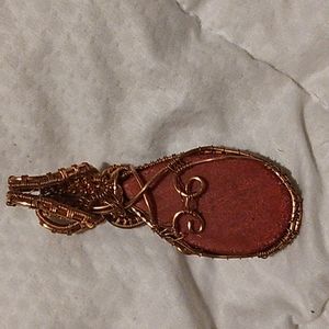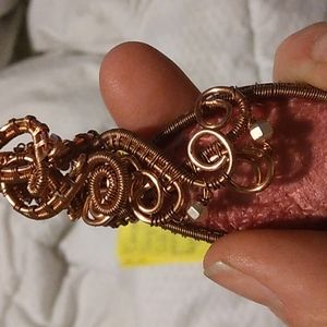 Pink vesin stone wrapped in copper wire size 3 1/2 x 1 1/2