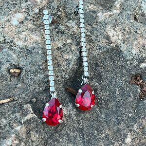 Beautiful silver post pierced statement earrings. My husband and I make jewelry using genuine Swarovski crystals. All items are new and much prettier in person than pictures. Scarlet red. Other colors on separate listings. Proceeds used to help our 5-yr-old granddaughter Lila May in her fight against cancer, but she lost her battle. Now she is dancing with the angels. A percentage of profit will go to Neuroblastoma charities. #550