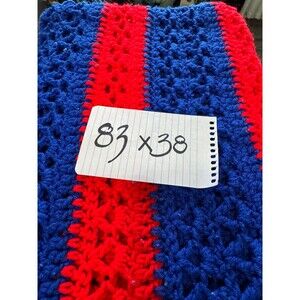 Handcrafted, red & blue crocheted blanket 83 x 38