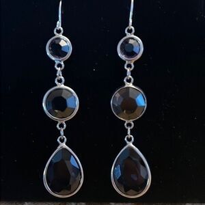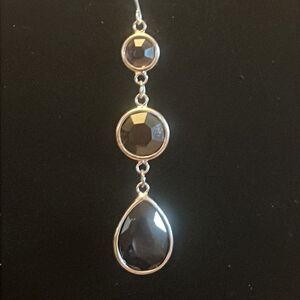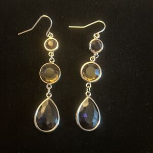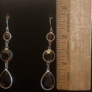 Handcrafted silver tone earrings with a Smokey colored stone.